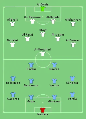 - "Tactical Line-up – Group A – Uruguay v Saudi Arabia" (PDF). FIFA.com. Fédération Internationale de Football Association. 20 June 2018. Retrieved 20 June 2018.