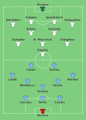- "Tactical Line-up – Group A – Uruguay v Russia" (PDF). FIFA.com. Fédération Internationale de Football Association. 25 June 2018. Retrieved 25 June 2018.