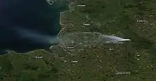 ![]() Annotated view of the Saddleworth Moor fire on 27 June, taken by NASA's Landsat 8 satellite | |