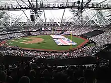 Locating a venue with the correct dimensions required for a baseball field was difficult, especially as the majority of stadiums in the London region are primarily designed for association football. MLB officials had evaluated multiple options (including cricket grounds such as The Oval), before finalizing London Stadium as the site.[4] The facility was originally constructed for the 2012 Summer Olympics; in late-2015, it was reported that MLB officials had measured the stadium's dimensions and considered it potentially suitable for baseball, and had negotiated the possibility of holding games there.[3][6]