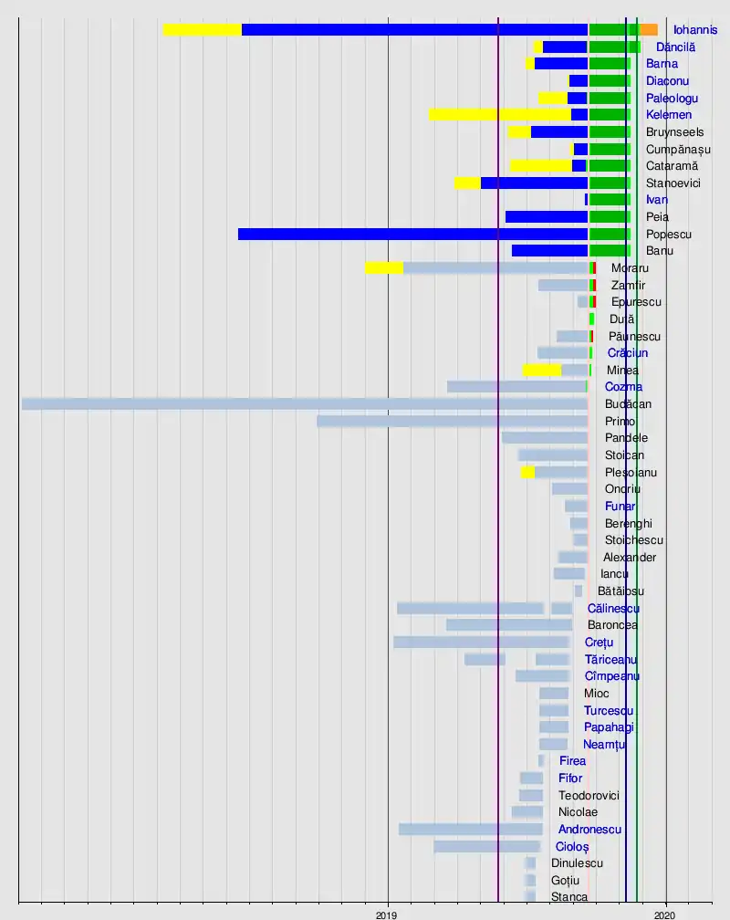 Intention: 29 August 2019[71] Official: 2 September 2019[72] BEC filing: 22 September 2019[73] BEC validation: 24 September 2019[74] Second round: Against Viorica Dăncilă, without openly endorsing Klaus Iohannis (21 November 2019)[75] | |