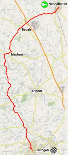 The race consisted of a route 54 kilometres (34 miles) in length, starting from Northallerton and ending in Harrogate.