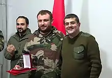 Armenian authorities reported the deaths of 3,439 servicemen during the war,[67] while the Azerbaijani authorities stated that more than 5,000 Armenian servicemen were killed, and several times more were wounded as of 28 October 2020.[310] After the war, the former director of the Armenian National Security Service, Artur Vanetsyan, had also stated that some 5,000 Armenians were killed during the war.[311] Also, the Armenian authorities had stated that about 60 Armenian servicemen were captured by Azerbaijan as prisoners of war.[68] The former Head of the Military Control Service of the Armenian MoD, Movses Hakobyan, stated that already on the fifth day of war there were 1,500 deserters from Armenian armed forces, who were kept in Karabakh and not allowed to return to Armenia in order to prevent panic. The press secretary of Armenian prime minister called the accusations absurd and asked the law enforcement agencies to deal with them. [312] Former military commissar of Armenia major-general Levon Stepanyan stated that the number of deserters in Armenian army was over 10,000, and it is not possible to prosecute such a large number of military personnel.[313] During the post-war clashes, the Armenian government stated that 60 servicemen went missing,[314] including several dozen that were captured.[315] and On 27 October 2020, Artsakh authorities stated that its defense minister Jalal Harutyunyan was wounded in action.[316] However, unofficial Azerbaijani military sources alleged that he was killed and released footage apparently showing the assassination from a drone camera.[317]