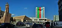 The peace agreement and the end of the war was seen as a victory and was widely celebrated in Azerbaijan.[249][250] On 10 November 2020, crowds waved flags in Baku after the peace deal was announced.[251] On 11 November, the President of Azerbaijan, Ilham Aliyev, at a meeting with wounded Azerbaijani servicemen who took part in the war, said that new orders and medals would be established in Azerbaijan, and that he gave appropriate instructions on awarding civilians and servicemen who showed "heroism on the battlefield and in the rear and distinguished themselves in this war." He also proposed the names of these orders and medals.[252] About a week later, at a plenary session of the Azerbaijani National Assembly, a draft law on amendments to the law "On the establishment of orders and medals of the Republic of Azerbaijan" was submitted for discussion.[253] Seventeen new orders and medals were established on the same day in the first reading in accordance with the bill "On the establishment of orders and medals of the Republic of Azerbaijan".[254] On 12 November, the Azerbaijani Ministry of Internal Affairs stated that it had moved the Shusha police department, which was previously located in Tartar District, into Shusha,[255] while on 14 November, the control of the Sugovushan reservoir was transferred to the Azerbaijani Ministry of Emergency Situations from the military.[256] On 15 November, the Armenian Apostolic Church claimed that Ghazanchetsots Cathedral had been defaced after the Azerbaijani forces took control of Shusha, prompting a statement by the Armenian Foreign Ministry denouncing the act; the Azerbaijani president Aliyev issued a statement saying that the Christian churches would be protected.[257] Also, on December 1, Azerbaijan's First Deputy Minister of Culture, Acting Minister Anar Karimov, told France24 that Karabakh's Christian cultural heritage would be protected by the government. Noting the Armenian Saint Gregory the Illuminator Church in Baku, Karimov stressed that the Christian religious monuments in Karabakh were "inherited from our ancestors."[258][259] On 14 January 2021, in an interview with Azeri Press Agency, Karimov told that the Christian monuments, including the Ghazanchetsots Cathedral, will be restored by the government.[260]