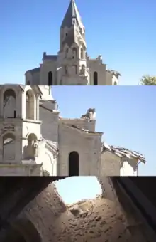 Civilian areas, including major cities, have been hit, including Azerbaijan's second-largest city, Ganja, and the region's capital, Stepanakert, with many buildings and homes destroyed.[331][332] The Ghazanchetsots Cathedral has also been damaged.[333] Several outlets reported increased cases of COVID-19 in Nagorno-Karabakh, particularly the city of Stepanakert, where the population was forced to live in overcrowded bunkers, due to Azerbaijan artillery and drone strikes conflict.[334][94] There were also reported difficulties in testing and contact tracing during the conflict.[334][94]