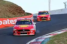 A control shock absorber manufactured by Supashock was introduced in a bid to reducing costs.[86][87] All cars had a reduction of downforce of up to twelve percent, in a bid to improve racing and encourage overtakes. The rear wing angle was be reduced from 18 degrees to 13 degrees, and has gurney flaps of 13 millimetres and 10 millimetres on the wing plane and bootlid respectively. The Mustang's rear wing has also moved forward by 90 millimetres and lowered by 50 millimetres.[88]
