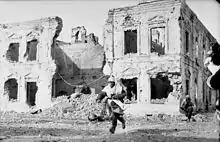 Whilst en route to Riga, for commitment with Army Group North, Generaloberst Busch, commander of the 16th Army ordered the forward elements of the division rushed into Kholm.[3] Detraining at Loknya, a small stop on the Dno Nevel railway line, but still 50 miles from Kholm,[4] the first battalion to arrive, the I/386, was rushed by all available trucks to Kholm along with a convoy carrying food and ammunition. Oberstleutnant Johannes Manitius, the commander of Infantry Regiment 386, joined his unit in Kholm and another battalion from the Regiment managed slipped past advancing units of the Soviet 3rd Shock Army, before the Russians threw a solid cordon around the town. The Germans just won the race for Kholm, and positioned a mixed battlegroup (kampfgruppe) of around 4,500 soldiers under the leadership of Generalmajor Scherer, but the group had virtually no artillery or anti tank guns. By 28 January 1942, the Soviets had closed the ring around Kholm and drove additional forces from the 218th Division under the divisional commander, Generalmajor Ukermann, back down the road to Loknya, where the remainder of the division was still arriving.[3]