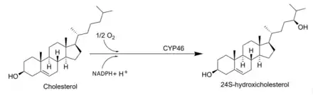 24S-HC may participate in several aspects of brain development and function, such as axon and dendrite growth or synaptogenesis.[4] Regulation of 24S-HC metabolism in neurons may play a role in their health and function, as well as their response to injury or disease.[9] Blood plasma levels of 24S-HC may be altered after acute brain injuries such as stroke[10] or in neurodegenerative diseases such as Alzheimer's disease, Huntington's disease, and multiple sclerosis.[11][12]