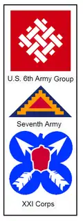 In the ETO the 289th was attached directly to the XXI Corps of the Seventh Army, U.S. Sixth Army Group. As a combat service support unit operating at corps level, the 289th was deployed as needed in whole or part, with companies and platoons often temporarily attached to other field commands. Thus it was common for elements of the latter to be far afoot of the unit's official location wherever its Headquarters & Supply company was stationed.[lower-alpha 1]