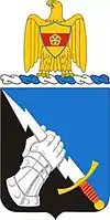 The colors oriental blue and silver gray are traditionally associated with military intelligence. The armored fist represents strength; the lightning flash denotes speed. The fist seizes the blade of the sword to indicate readiness and vigilance. Black denotes dependability and suggests covert capabilities. The fist, upraised and grasping the sword, suggests leadership, highlighting the unit's motto.