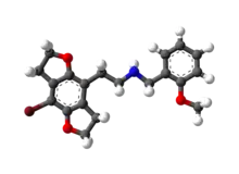 - Ettrup A, Hansen M, Santini MA, Paine J, Gillings N, Palner M, et al. (April 2011). "Radiosynthesis and in vivo evaluation of a series of substituted 11C-phenethylamines as 5-HT (2A) agonist PET tracers". European Journal of Nuclear Medicine and Molecular Imaging. 38 (4): 681–93. doi:10.1007/s00259-010-1686-8. PMID 21174090. S2CID 12467684.