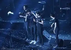 The quartet were guests on KBS2's talk show You Hee-yeol's Sketchbook, where they performed "Cinderella", as well as a rearranged version of "I'm a Loner" and "Can't Stop".[49] CNBLUE appeared on SBS Power FM's Cultwo Show and KBS Cool FM's Kiss the Radio in order to promote the album.[50][51] The band, sans guitarist Lee, also made a surprise appearance on the September 27 broadcast of KBS2's Gag Concert for the same purpose.[52] The band held the CNBLUE 2nd Album [2gether] Behind Day event on October 9 to commemorate the end of the album's domestic promotional cycle.[53] tHE final music show performance was broadcast on Show! Music Core on October 17.[54]