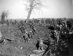 Within the AIF, according to Westerman, the pioneer battalion concept was not "effectively employed by Australian commanders".[19] In this regard, Westerman argues that the AIF pioneer battalions were rigidly utilized as either engineers or infantry, instead of "integrating those two functions".[19] Additionally, while he argues that they were under utilised in their infantry roles, and that the amount of time that was spent training as infantry and the resources consumed was disproportionate for the amount of time they spent in the line undertaking infantry tasks.[20] While several units, such as the 2nd Pioneers at Montrebrehain, undertook successful infantry actions,[21] units such the 1st and 4th Pioneers never saw action directly in their infantry role.[22] Additionally, the units' separation from the field engineers resulted in "administrative, organisational and command and control problems" which even limited their utility as engineering formations.[19]