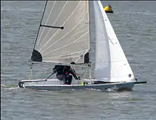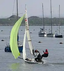 ![]() A V3000 dinghy using both gennaker and trapeze | |