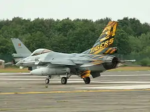 The 31st 'Tiger' Squadron is a Strike-Fighter squadron in the Air Component of the Belgian Armed Forces. It is part of the 10th Tactical Wing and operates F-16 Fighting Falcons.They use a tiger as emblem.
