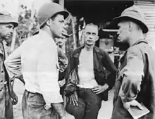 The 32nd Division was among the first of all US divisions to engage in a ground assault against the enemy in World War II.[3] General Harding was nearly killed before the attack began. The first day of the assault, Harding was on board a sixty-two-foot wooden coastal trawler, the Australian civilian crewed Minnamurra that was operating as part of the U.S. Army's Small Ships Section, with his headquarters company when it and its convoy carrying important artillery and supplies was attacked by Japanese fighter-bombers.[47] Harding saved himself by diving overboard and swimming to shore. The attack destroyed all five vessels and the supplies Harding was relying on for the upcoming attack.[48] More were sunk over the following days or ran aground. General George Kenney wielded a great deal of influence over MacArthur, and although he had no knowledge of jungle warfare, insisted that tanks had no role in ground action in the jungle, but that the "artillery in this theater flies."[49] Harding reluctantly accepted MacArthur's decision to go ahead with the attack and to rely on direct air support in place of tanks or heavy artillery.