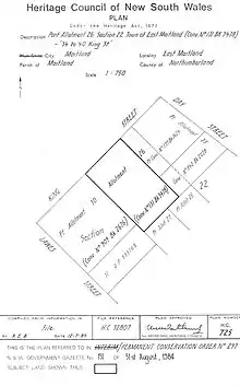 The City of Maitland describes it as an "exceptional and relatively rare example in New South Wales of a small-scale nineteenth-century single-storey terrace row, and notes that it "represents the earliest phases of the town's residential development and a tangible record of the lifestyle of the working class in the mid-nineteenth century".[2]