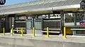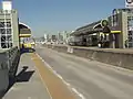 37th Street/USC station is used by the Metro J Line bus rapid transit route which runs between the El Monte Station in El Monte, Downtown Los Angeles and the Harbor Gateway Transit Center in Gardena, California, with select trips continuing onto San Pedro.[5] The J Line is part of the Metro Busway system.[6] On weekdays, J Line buses operate roughly every four to ten minutes during rush hour, with longer headways of 15 minutes during midday hours, 20 minutes during evenings, 40 minutes during nights and every hour overnight.[5] On weekends, J Line buses arrive at 37th Street/USC station every 20 minutes most of the day, with longer headways of 40 minutes during nights and every hour overnight.[5]