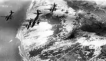 The group and its squadrons received a Distinguished Unit Citation for the effectiveness of its bombing in the Ardennes, 23–25 December 1944, when the group made numerous attacks on enemy lines of communications. It flew several night missions in February 1945, using B-26s as flare planes, an A-26 for target marking, and A-20s to bomb the objectives. Continued to fly support and interdictory missions, aiding the drive across the Rhine and into Germany, February— April 1945. The group converted to Douglas A-26 Invader aircraft, but the war ended before the group was ready to fly them in combat.