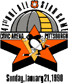 The 41st National Hockey League All-Star Game was held in Civic Arena in Pittsburgh, home to the Pittsburgh Penguins, on January 21, 1990. The game saw the team of all-stars from the Wales conference defeat the Campbell conference all-stars 12–7. The Montreal Canadiens were slated to host the 41st All-Star Game but withdrew their bid to considerations due to the hosting by Quebec City of Rendez-Vous '87. This had allowed the Penguins, who wanted to host an All-Star Game in 1993, to move up three years early.