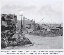 It retired the Ervillers – Bucquoy area on 26 March 1918. Together the 42nd and 62nd (2nd West Riding) Division it held the Rossignol Wood – Bucquoy sector under heavy shelling against six attacks by the German 3rd Guards Infantry Division, the last with assistance of 11 Mk. IV tanks.[54]
