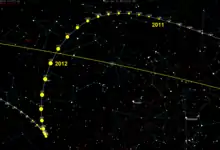 - "AstDys (433) Eros Ephemerides for 2012". Department of Mathematics, University of Pisa, Italy. Retrieved 27 June 2010.