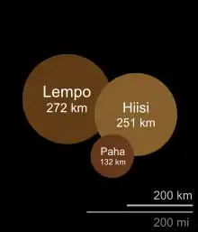 −17 km in diameter, respectively.[6] The earlier discovered satellite Paha orbits the barycenter of the Lempo–Hiisi system.