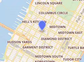 47th Street Theatre is an Off Broadway theatre venue located in New York City's Hell's Kitchen neighborhood. The venue has been home to the Puerto Rican Traveling Theater,[1] and in 2007 began showing productions of the Forbidden Broadway series of shows.[2] In June 2017, Spamilton, a parody of the musical Hamilton moved to the theatre from the Triad Theatre.[3]