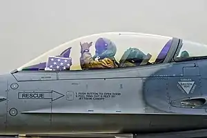 ![]() An F-16 Fighting Falcon pilot of the 495th Fighter Group prepares to take off from Bagram Airfield | |
