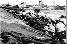 After intensive training, it shipped out on 13 January 1944, and in 13 months made four major amphibious assaults, in the battles of Kwajalein (Roi-Namur), Saipan, Tinian and Iwo Jima under command of V Amphibious Corps, under its command and control were the first Joint Assault Signal Company,[6][7] suffering more than 17,000 casualties. It was awarded two Presidential Unit Citations and a Navy Unit Commendation, and then inactivated 28 November 1945.[4]