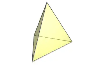 ![]() The cell-first projection of the 5-cell into 3 dimensions has a tetrahedral envelope. The nearest cell projects onto the entire envelope, and, from the 4D viewpoint, obscures the other 4 cells; hence, they are not rendered here. |