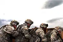 The 58th Infantry Brigade Combat Team was one of the primary units of the Maryland Army National Guard. It consisted of an infantry brigade combat team (IBCT) format of two infantry battalions, one light cavalry squadron, one towed artillery battalion, a brigade support battalion and a special troops battalion.[1] It deployed overseas for combat service in the Iraq theater during the War on Terror in 2007. This is the brigade's first combat deployment, although some of its subordinate units served in prior wars.