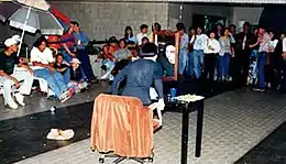 5th Passage was co-founded in 1991 by Suzann Victor, Susie Lingham, and Han Ling, later joined by Daniel Wong, Henry Tang and Iris Tan.[1][6] The initiative's programming emphasised an interdisciplinary approach—it exhibited performance art, installation, music, photography, and design,[8] also organising public readings and forums.[2][9][1][10] Art critic Lee Weng Choy describes 5th Passage as an initiative that had "focussed on issues of gender and identity, and on the work of women artists".[9] Preceding Amanda Heng's Women in the Arts (WITA) collective formed in 1999,[11] 5th Passage could be considered an early non-institutional platform for contemporary feminist art practices in 1990s Singapore.