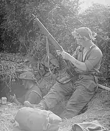 In the summer 53rd (Welsh) Division was changed to the Indian Army establishment: only one British battalion was retained in each brigade, the remainder being sent as reinforcements to the Western Front. Initially, 1/5th and 1/6th Bns RWF continued in 158th Bde alongside Gurkha and Indian battalions from June, then on 1 August the two battalions merged to form the 5th/6th Battalion, Royal Welsh Fusiliers under the command of Lt-Col Borthwick of the 1/5th. This continued as the sole British battalion in 158th Bde for the remainder of the campaign.[12][23][24][22][25][62][63][64]