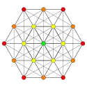 The diagonal f-vector numbers are derived through the Wythoff construction, dividing the full group order of a subgroup order by removing one mirror at a time.[3]