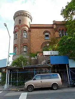 75th Police Precinct Station House is a historic police station located in Brooklyn, New York. It was built in 1886 and is a three-story, yellow brick building above a sandstone foundation and watertable in the Romanesque Revival style. It features a round corner tower and Norman-inspired projecting main entrance portico. The stable is a two-story brick building connected to the station house by a one-story brick passage. It ceased use as a police station in 1973 and later used by a local church.[2]
