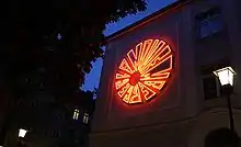 The monument was designed by artist Silke Wagner. The monument is made of aluminum and glass forming the lettering "8 November 1939". The elements are arranged in a circle in a way that represents an explosion. Every night at 21:20 (the exact time of the detonation of the bomb) the numbers are illuminated one by one until the entire script is glowing. The lights remain on for a minute before turning off again.