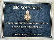 ![]() Commemorative plaque for 850 Squadron RAN at Rockingham Naval Memorial Park | |