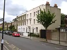 He sketched the 1824-built,[3] three-storey[3] Georgian terrace including the house, opposite Durand School,[4] using pencil with chalk highlights.[3] He lettered the wall "Hackford Road" and the gate "Maison Loyer".[3]