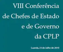 The VIII Conference of Heads of State and Government of the CPLP (Portuguese: VIII Conferência de Chefes de Estado e de Governo da CPLP), commonly known as the 8th CPLP Summit (V Cimeira da CPLP) was the 8th biennial meeting of heads of state and heads of government of the Community of Portuguese Language Countries, held in Luanda, Angola, on 23 July 2010.[1]