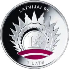 In addition to the various domestic and international events organised to celebrate the anniversary, a commemorative stamp and coin were issued to mark the occasion. Various governments issued proclamations congratulating the Latvian republic; The US resolution, backed by Barack Obama, called for the US president to urge Russia to admit the illegality of the Soviet occupation.[5] The 90th anniversary prompted the publication in 2010 of an academic retrospective of the Latvia nation state during the period of the occupation of the Baltic states[6]