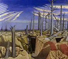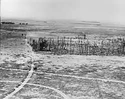 The brigade returned to the same trenches on 23 September, but the machine guns in Soyer Farm prevented any 'peaceful penetration'. A formal attack was arranged for the morning of 28 September (the opening day of the Fifth Battle of Ypres[3]) but was postponed to 15.00 because of bad weather. The brigade advanced behind a creeping barrage and suffered heavy casualties, but the general retirement of the Germans along the whole line allowed it to push on through Ploegsteert Wood and advance up to the River Lys on 3 October.[63][64][65]