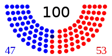 | Beginning of next congress | 46 | 0 | 54 | 100 | 0 |