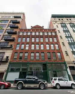 The front facade of the five-story, red brick building features cast iron piers on the first floor and a triangular pediment with Gothic arch at the roofline.[4] It is one of the few commercial loft buildings from the period in Philadelphia which have not been extensively changed.[2][3]