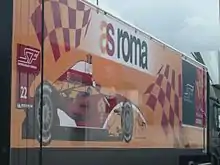 The A.S. Roma team truck in Silverstone Circuit's paddock (2010)