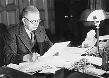 A member of the Cabinet following Labour's victory, Alexander strongly supported the Foreign Secretary, Ernest Bevin, sharing his goals of maintaining Britain's influence and opposing the Soviet Union. Britain's wartime ally was admired at the time, and his outspoken criticisms of Russia lessened Alexander's popularity. In 1946 he deputised for Bevin at the Paris Peace Conference, and was part of the Cabinet delegation to India, under Stafford Cripps, exploring possibilities for independence. At the end of 1946 he became Minister of Defence, a role previously held only by Churchill and Attlee when they were serving as Prime Minister. Responsible for all three armed services, he often clashed with the Chief of the Imperial General Staff, Lord Montgomery.[10] He was responsible for formulating the system of National Service and faced a protracted fight against Labour backbenchers who opposed the continuation of conscription in peacetime. In January 1947 he was one of six ministers on the Gen 75 Committee that secretly authorised Britain's nuclear programme; in March he was in the negotiations for the Treaty of Dunkirk, laying the foundations for NATO. As the Cold War began, Alexander's criticisms of the USSR gained wider acceptance. In 1948 he became a Freeman of the City of Sheffield.