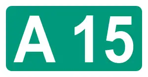 Route number sign for A15 ("A" Class) highway in Sri Lanka