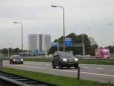 The A28, however, is not the most direct connection between Utrecht and Groningen. The route via Lelystad and Heerenveen, following the A27, A6 and the A7, is some 10 kilometers shorter. Groningen is not signed at the southern terminus of the motorway to avoid confusion. Groningen first appears on the signs near exit Soesterberg.