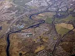 Construction on the six-lane M74 Northern Extension (M74 Completion) northwards by 5 miles (8.0 km) through the south-eastern part of Glasgow to meet the M8 started in 2008, with opening on 28 June 2011.[4] The extension involved the demolition of the Rosebery Park football ground.[5]