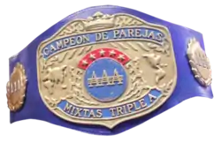 The AAA World Mixed Tag Team Championship (Campeonato en Parejas Mixtas AAA in Spanish) is a tag team title contested for in the Mexican lucha libre promotion Lucha Libre AAA Worldwide (AAA). The championship is exclusively for teams composed of one male wrestler and one female wrestler. Being a professional wrestling championship, it is not won legitimately: it is instead won via a scripted ending to a match or awarded to a wrestler because of a storyline.
